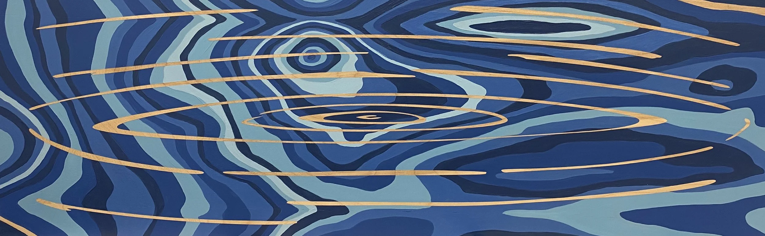 Below are my more recent works, painted in my new studio after having been on a painting hiatus for a few years when my kids were young. This newer work employs a layering technique in which I designed and created my own stencils to add imagery inspired by nature into the pieces of wood to help tell a seasonal story and share the metaphors of all that nature gifts us. You can also view the work in context of the exhibit in which they were presented, Translations: a chain of painting, poetry, mosaic, and assemblage.
